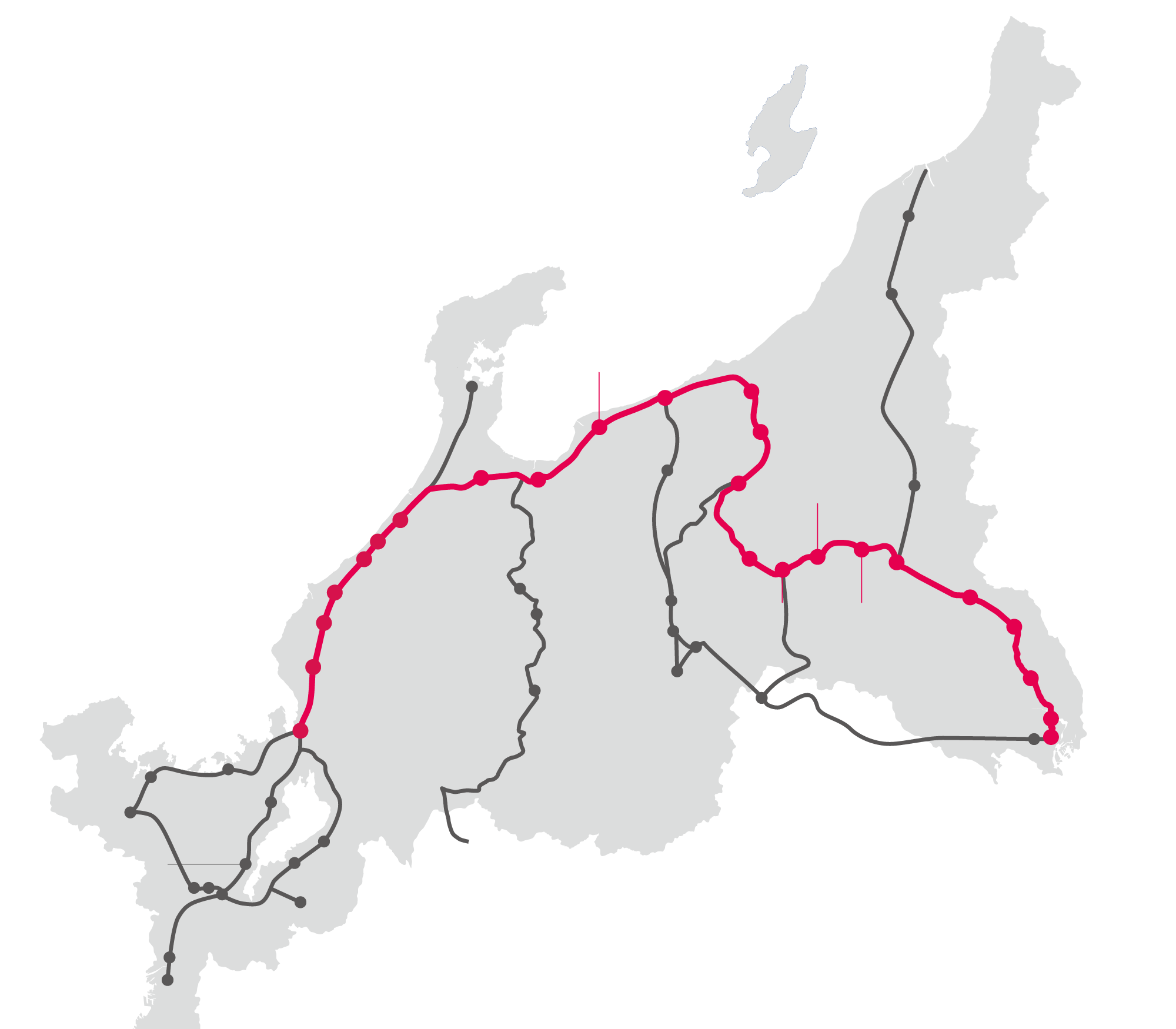 The areas along the Shinkansen Line are famous for their tourism resources, such as nature, history, culture, food and hospitality. It is no exaggeration to say that you will find all of Japan’s attractive features there.